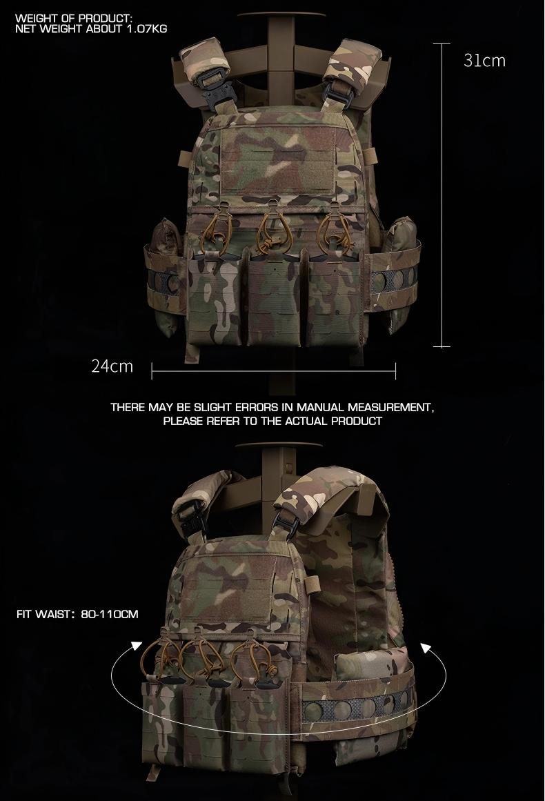 3.The vest is suitable for SAPI medium or 9X11.29 bulletproof plates, which must be purchased separately.